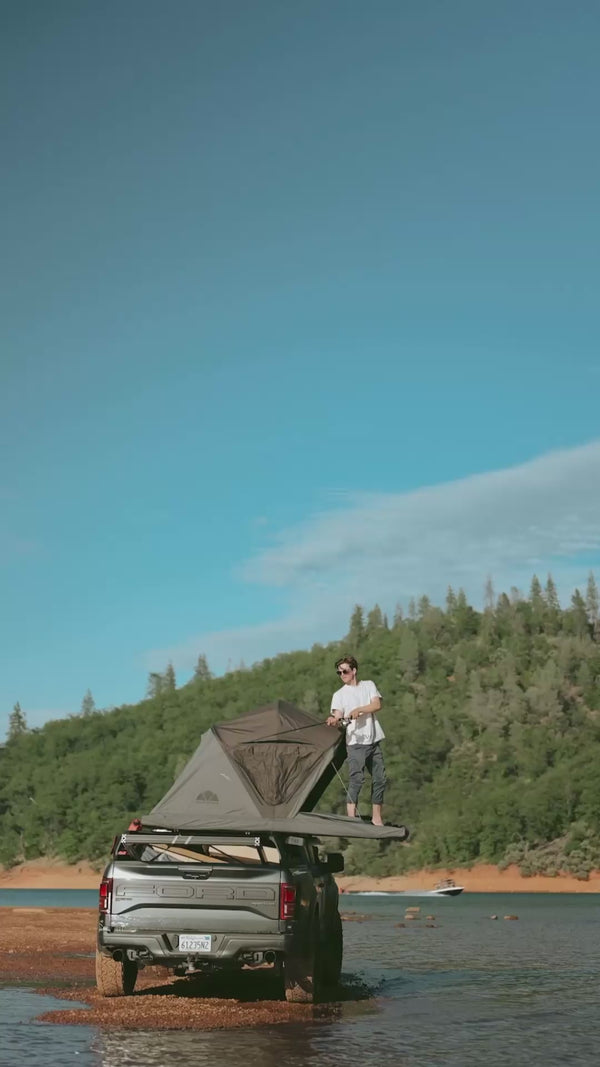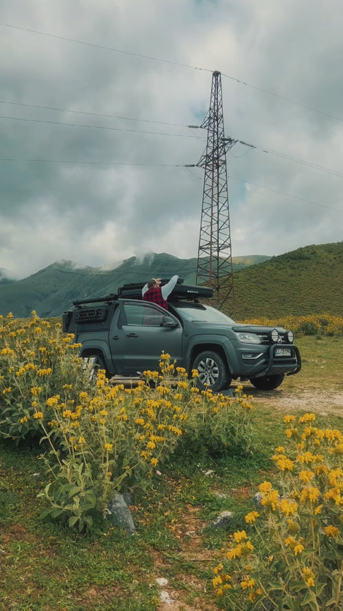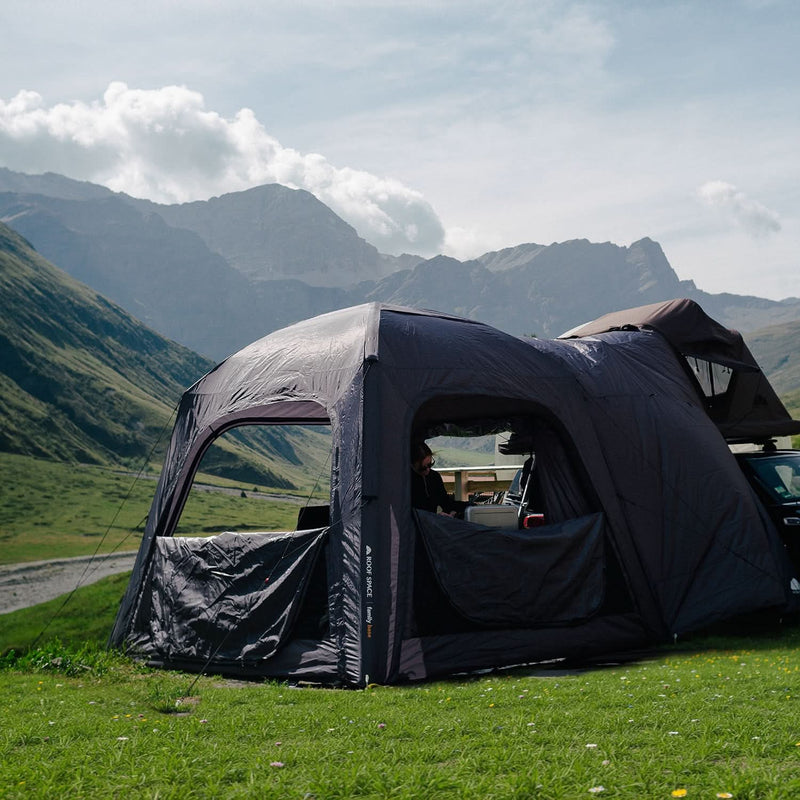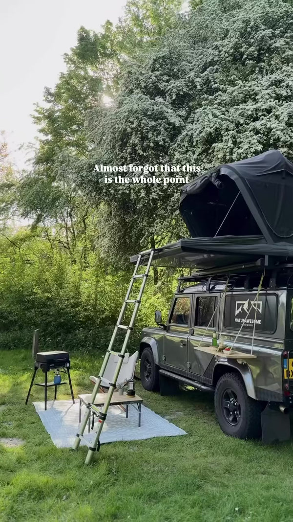 L'auvent Light Awning agrandit votre setup camping avec la tente de toit avec une surface de 3 × 3,5 m. Légère, elle offre une protection efficace contre le soleil et la pluie et s'oriente grâce aux tiges télescopiques réglables. Fixation directe à la tente de toit pour un montage rapide – idéal en extension flexible.