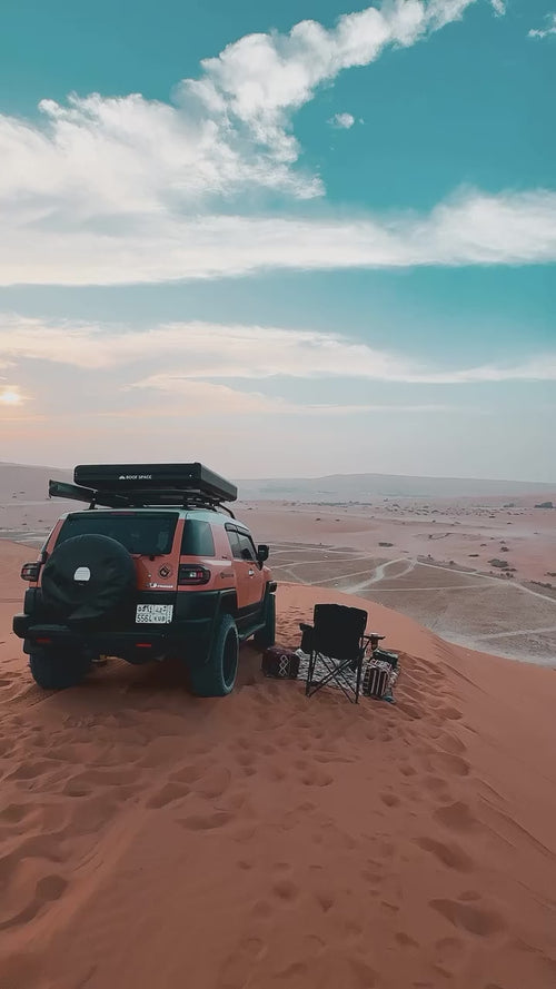 Choisissez avec soin : terrain plat, évitez les pentes, ne campez pas en zone inondable ni sous des falaises ou près d'arbres morts. Stabilisez le véhicule. Orientez l'entrée dos au vent. Par vent fort, fixez la tente avec la sangle sur la jante. En cas d'intempéries, repliez la tente et abritez-vous dans le véhicule. Gardez une distance suffisante des feux et barbecues.